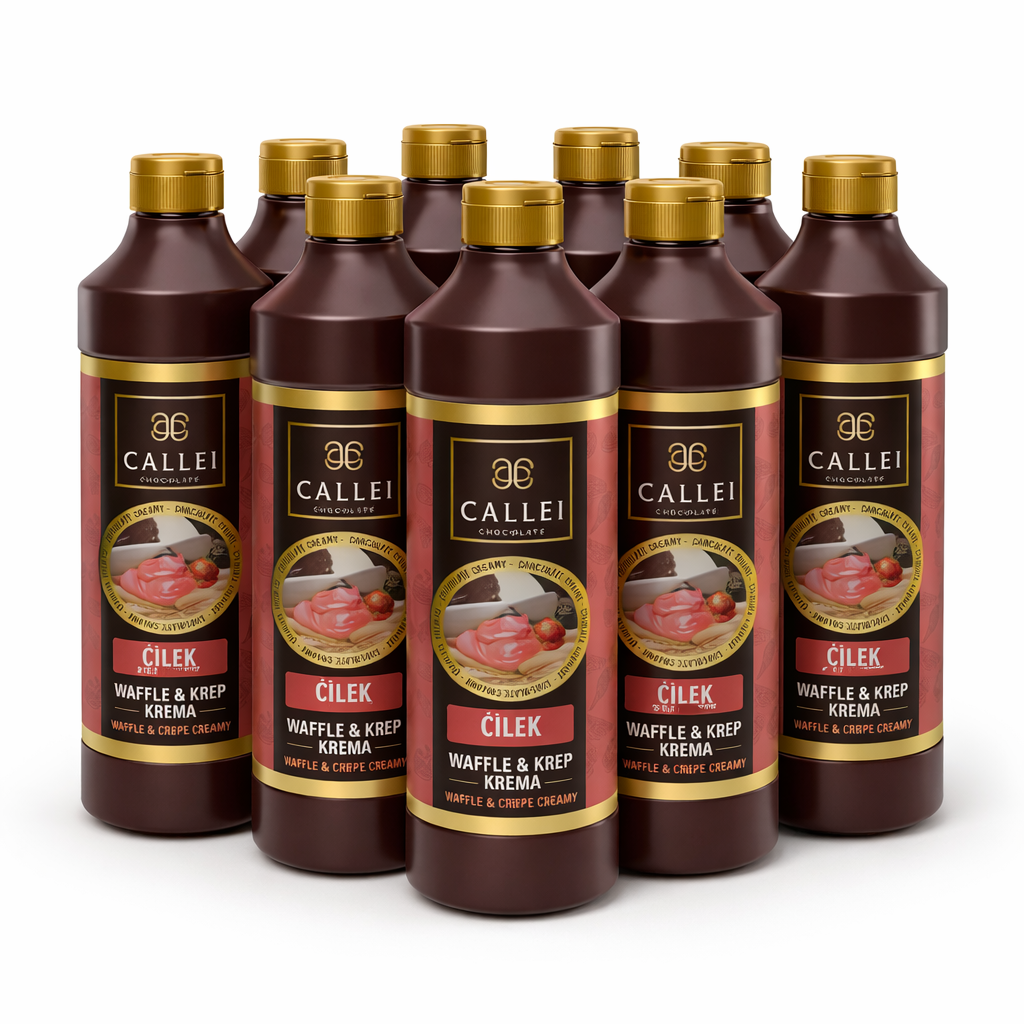 Özenle seçilen en kaliteli Süt , Kakao ,Kuruyemişler , Yağ ve Pancar Şekeri ile ürettilen kıvamı özel ve rengi parlak Callei “ÇİLEK” Waffle Şişe Çikolata Kreması ile Waffle, Pankek, Krep, Dondurma, Donut, Churros, Pişi, Kek, Pasta, Lokma ve Tatlı gibi önceden özenerek hazırladığınız ürünlerinizin içine ve üzerine sürebilir , dökebilir , ayrıca özel akışkan kıvamı , özel şişesi ve kapağı sayesinde üzerlerine ve tabaklarınıza dekor yapabilir , bir çok pastacılık ürünlerinde hayal edebildiğiniz kadar farklı amaçlar için kullanabilir , ürünlerinize eşsiz bir lezzet ve görünüm katabilirsiniz.