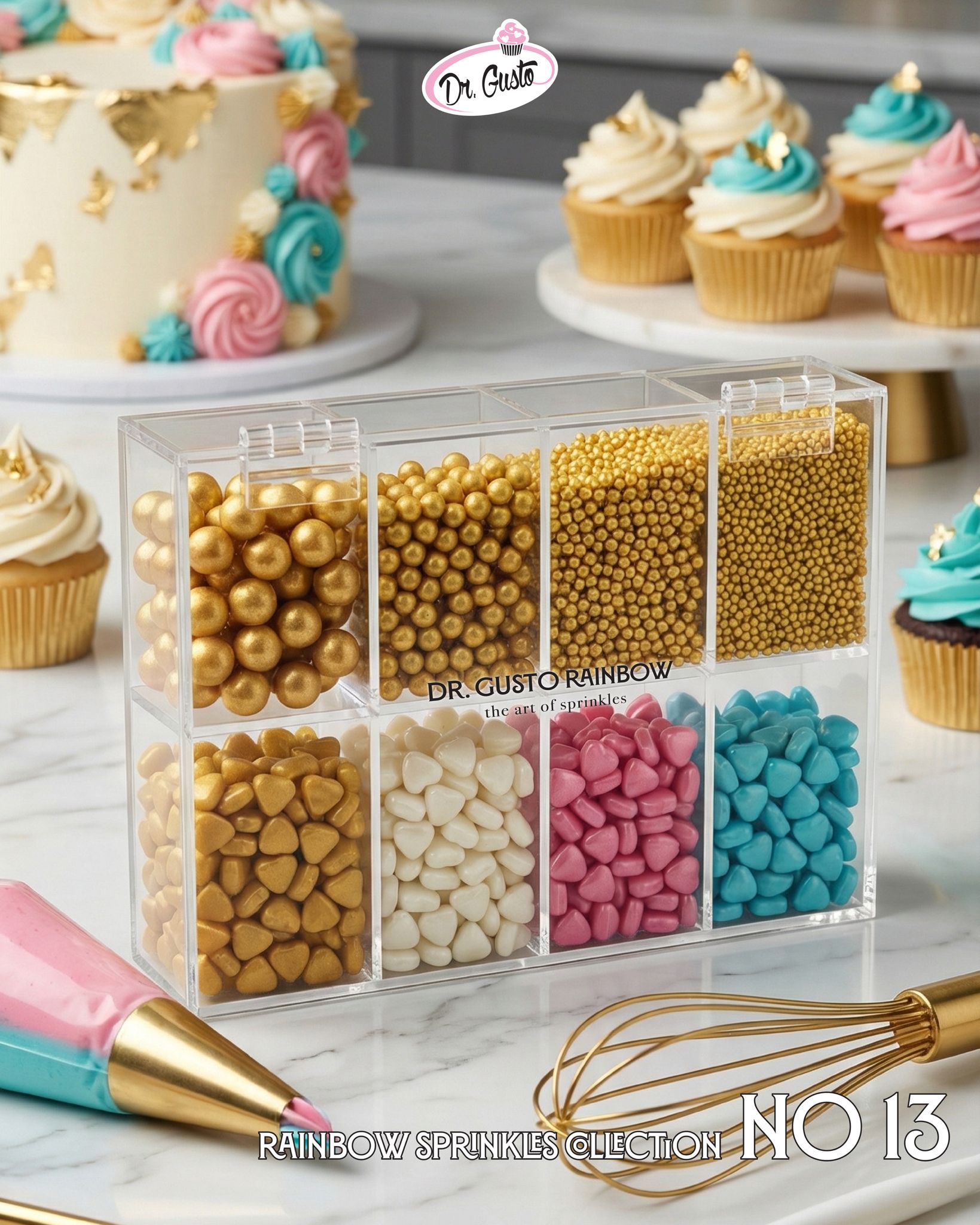 Dr. Gusto Rainbow Süsleme Şekerleri; pasta, cupcake, kurabiye, cake pops, donut ve benzeri tüm tatlılarda profesyonel ve dekoratif sonuç almak için üretilmiş yenilebilir süsleme şekerleridir.