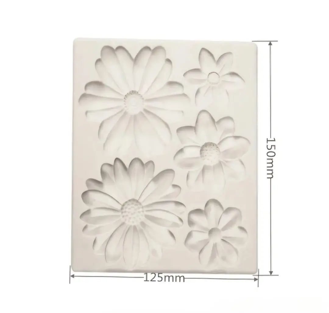 Pasta ve tatlı süslemelerinde doğal ve gerçekçi papatya çiçekleri oluşturmak için tasarlanmış silikon kalıp. Farklı boyutlarda çiçek desenleri sayesinde tek kalıpla birden fazla tasarım elde edebilirsiniz.